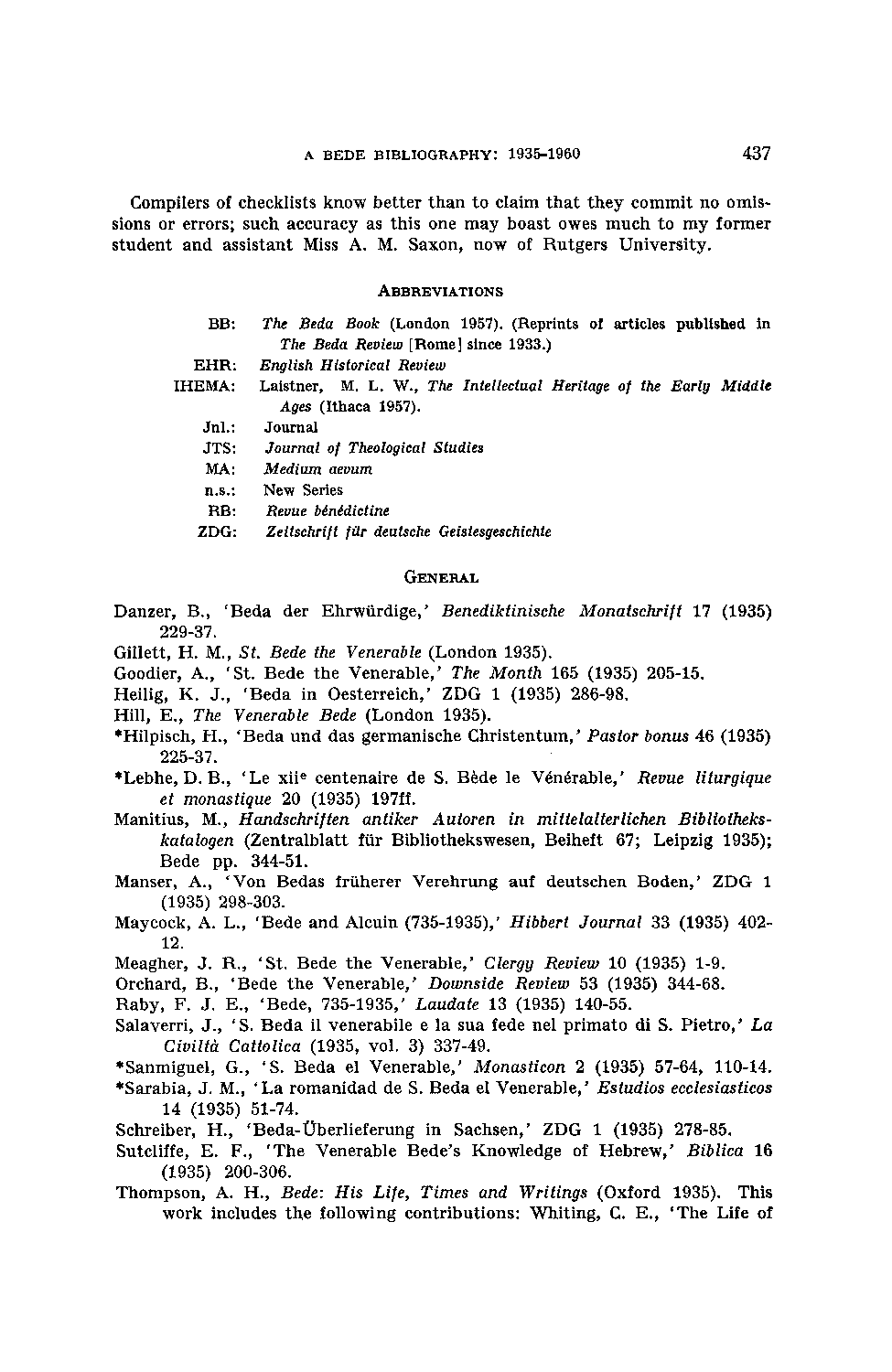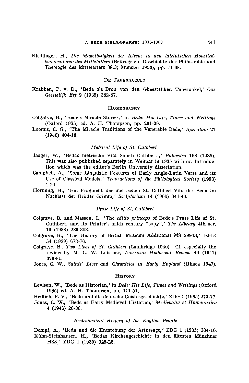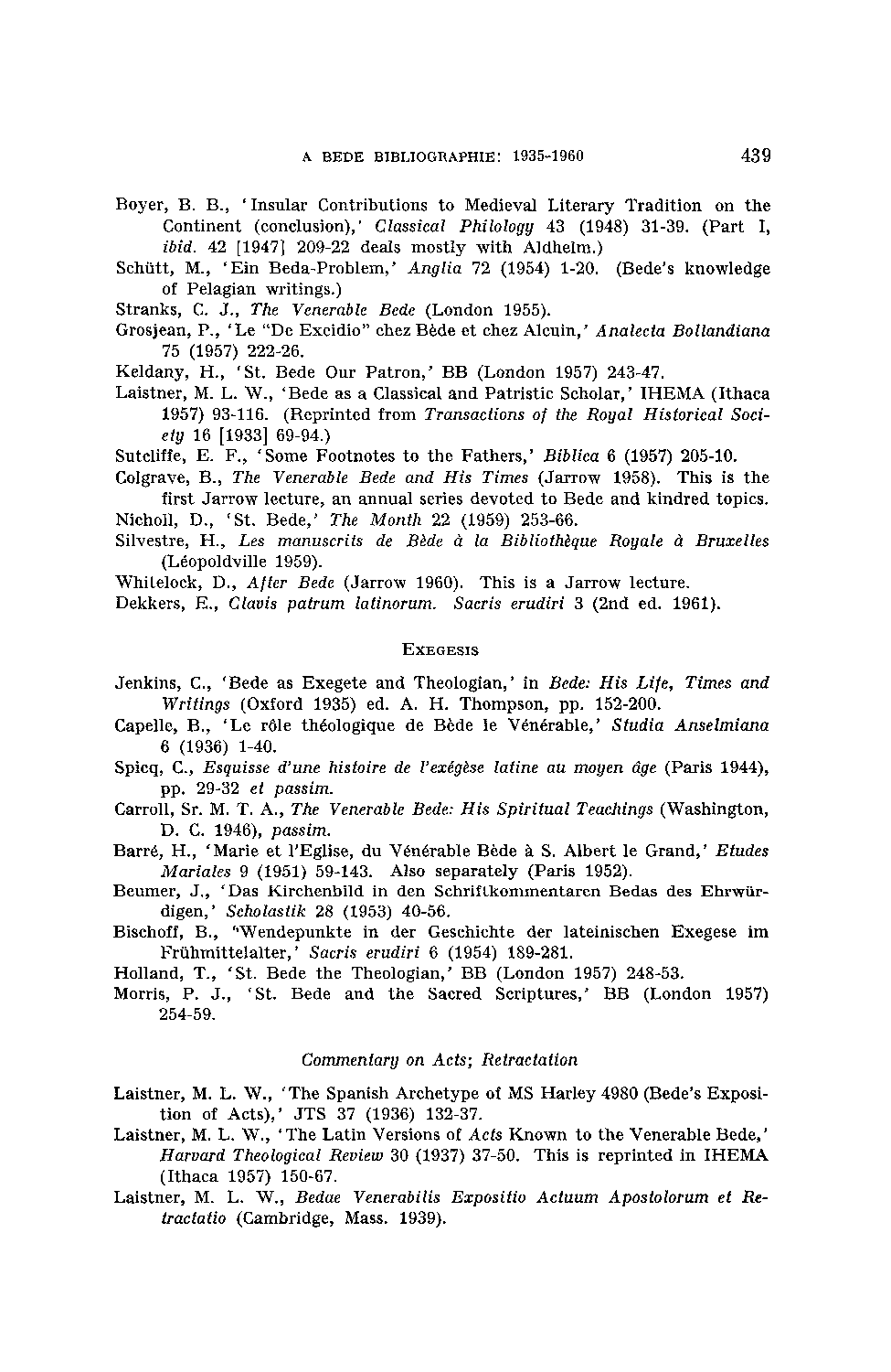 Article. Bolton. A Bede Bibliography : 1935-1960.